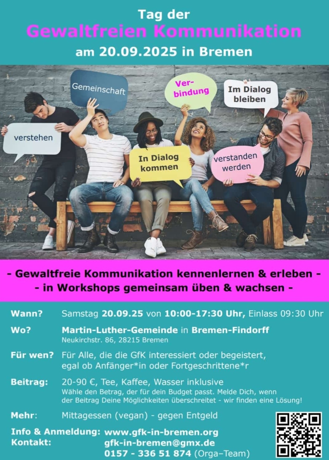 Am Samstag den 20.09.2025 wird es einen Tag der Gewaltfreien Kommunikation in Bremen geben.